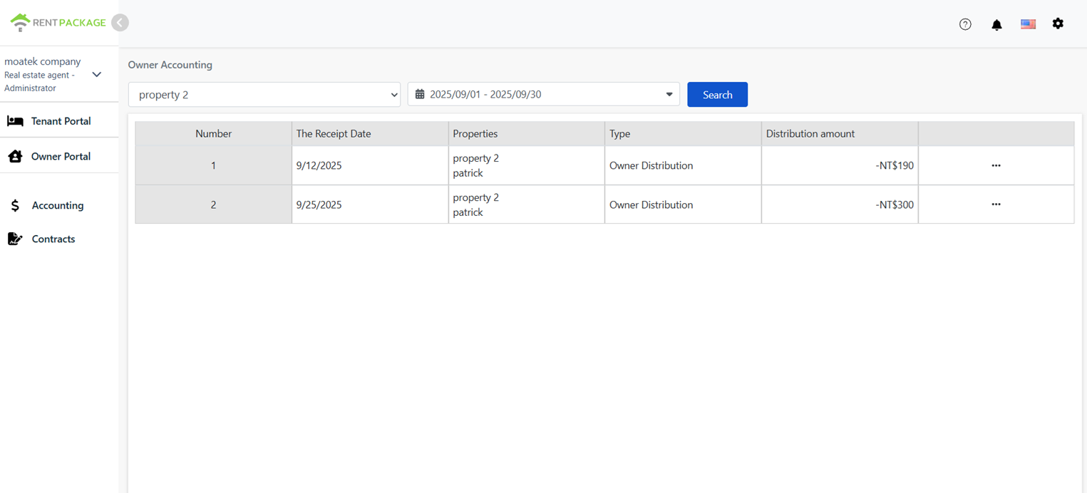 - After payout, you can find it under [Accounting] > [Owner Accounting] > [Transferred].