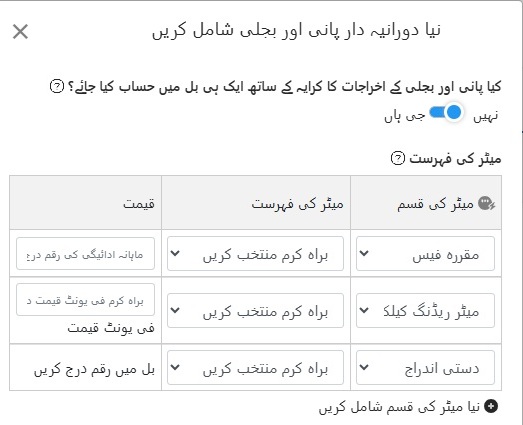 - یونٹ ریٹ مقرر کریں (جیسے 5 روپے فی یونٹ، 5.5 روپے فی یونٹ)